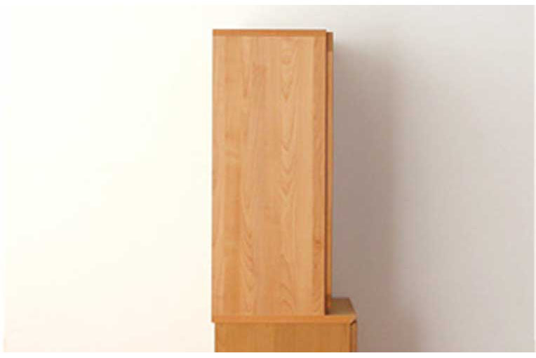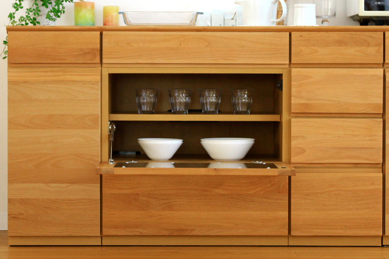 | 素材 | 【60ガラス戸】 (天板・側板)天然突板 (ガラス戸枠)天然無垢材 (ガラス)強化ガラス4ミリ厚 【60ガラス扉】 (引き出し前板)天然無垢材 (表面材)天然突板 (側板)プリント化粧合板 ※素材はアルダー、ウォルナットからをお選びいただけます。 |