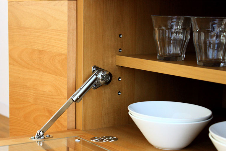 ガラス扉の開閉は、スローダウンステーを採用しています。ゆっくり滑らかに扉が閉まるため、指を挟んだり勢いよく閉まるのを防いでくれます。