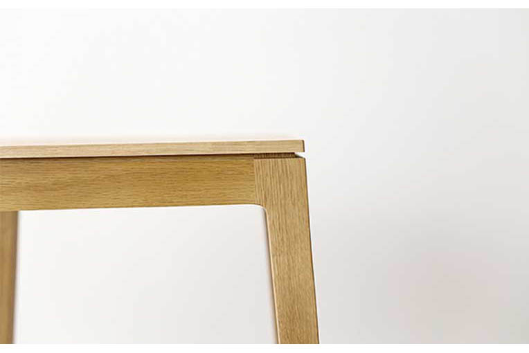 高さのあるスタイリッシュな脚部と、薄めに仕上げた天板が緻密に計算された絶妙なバランスでどの方向から眺めてもスッキリした印象のフォルムが特徴的です。