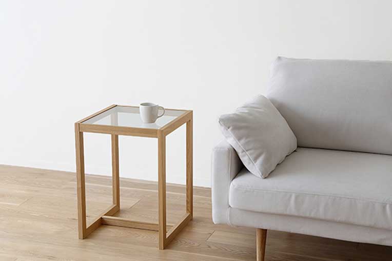 | 素材 | (フレーム)タモ/ウォールナット無垢材 (天板)強化ガラス(厚さ6mm) |