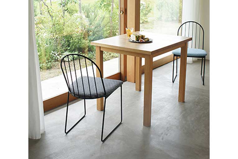 コンパクトで軽やかな、住宅だけでなくカフェなどの飲食店でも使いやすい鉄の椅子。ポイントは後ろから見ても簡潔なデザインであり、シンプルな形だけど座り心地が良いことです。サンドブラック以外のカラーフレームもおすすめです。