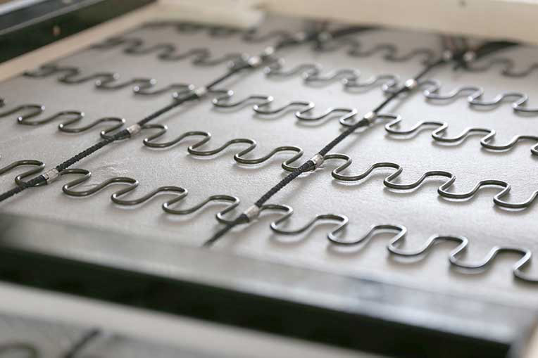 座面には木枠フレームにS字バネを張り込んでいます。ウレタンとの絶妙なバランスで求める座り心地を与える とともに、コイルスプリングと比べ重量が軽く、ソファの自重を軽くできるのが特徴。