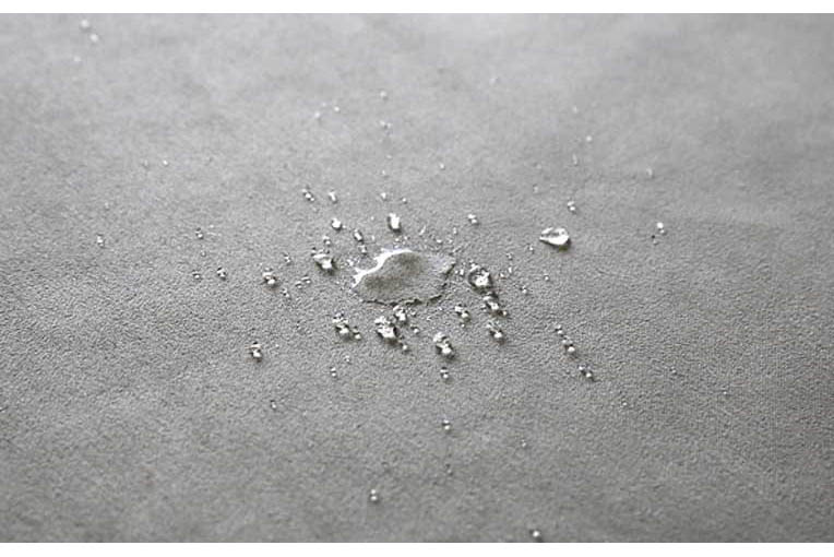 カバーはスエード調の生地で、水に強い撥水加工を施しています。飲み物をこぼしてしまった際は布で軽く生地を抑えることで汚れや水分の浸透を防ぎます。