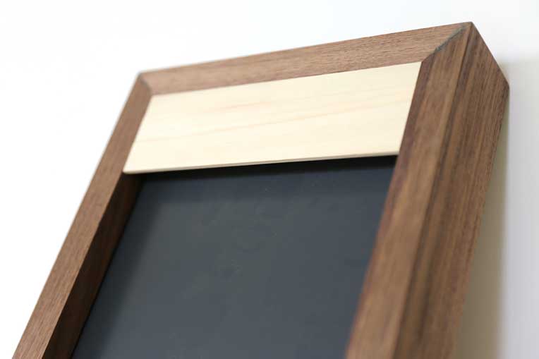側板はミラー面を強調した繊細な細さのスタイリッシュなデザインです。5ミリ厚の無垢材を使用しています。「留め加工」で見た目も美しく細めながらしっかりと強度を保ちます。