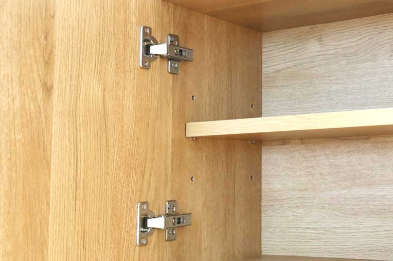 W120は3枚扉です。移動棚は2枚付属しています。見せたくないものは、下部のキャビネットへ。「見せる」と「隠す」をお好みで使い分けて、理想のインテリアをお楽しみください。