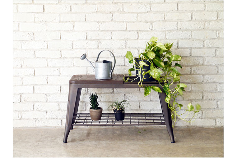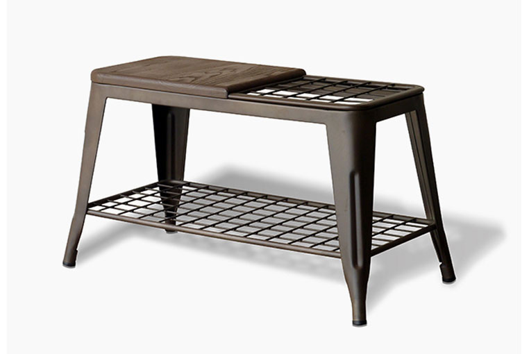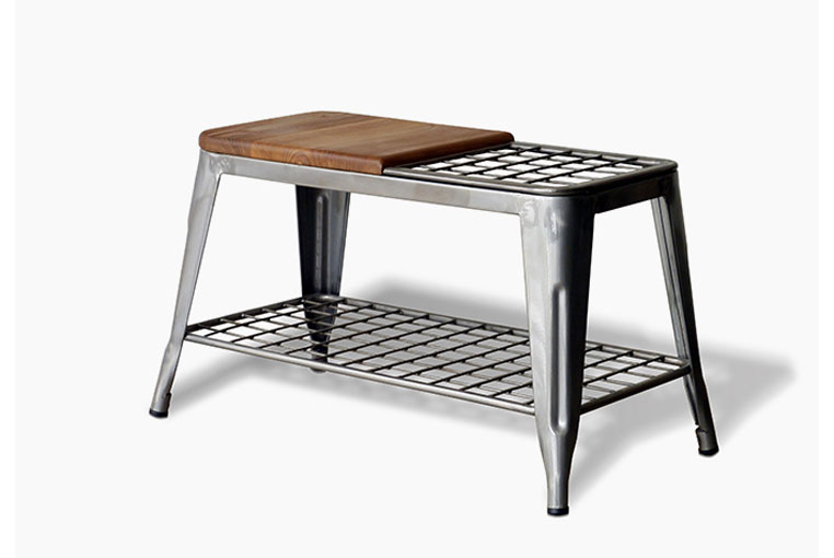 スチールと木製の質実剛健なデザインがミッドセンチュリーの雰囲気を感じさせるベンチ。
