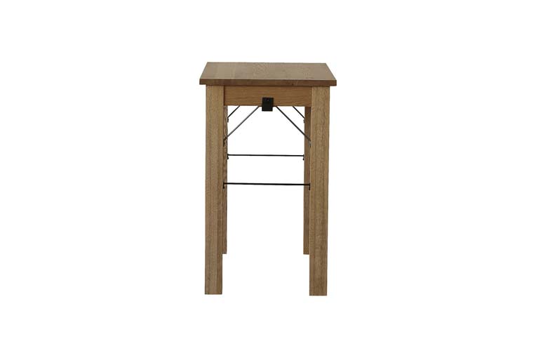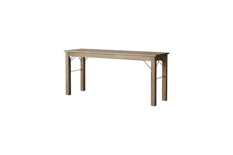 使用している古材にはその特性と風合いを生かして表現するような加工を施しております。そのため「天板の凹凸」「補修跡」「木材の表情が一点一点異なる」「色の濃淡割れや釘穴、連結穴の跡」「板の継ぎ目が浮き出て見えるようなライン」などの特徴がございます。