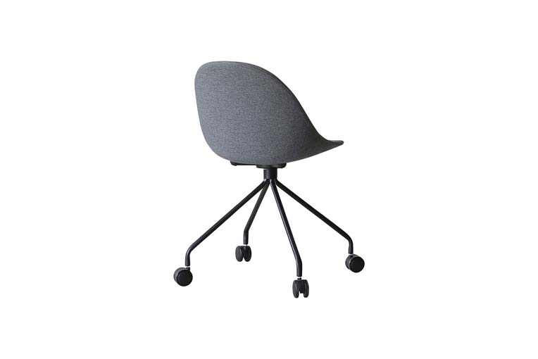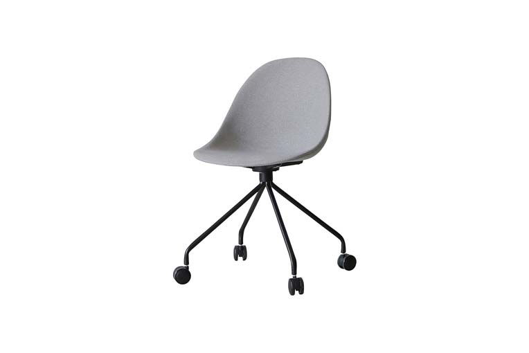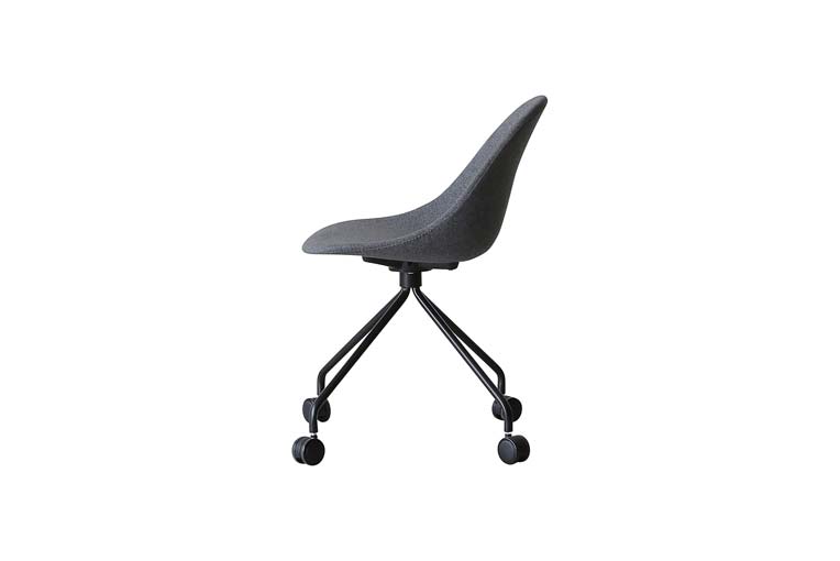 なめらかでまるい座面が背中から腰を優しくホールドしてくれるオフィスチェアータイプ。4つのキャスターがついており、オフィスの中でも滑らかに動いてくれます。素体にファブリックを張ったこちらのタイプは、どんなシーンでも合わせやすいように落ち着いた色味をチョイス。オフィスシーンだけでなく、ダイニングやデスクチェアに合わせることでモダンで遊び心のある雰囲気を作ってくれます。