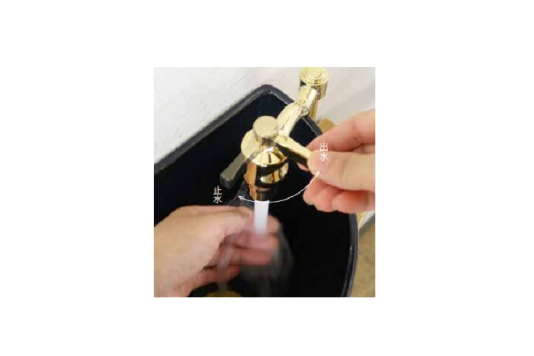 ハンドルを90度回すことで吐水・止水が可能です。(JIS認証品)