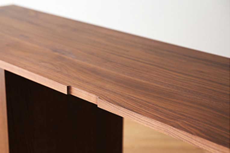 引き出しの前板に面取り加工を施すことで、天板を載せた際の収まりがよく、機能面はもちろん見た目もスマートで美しい仕上がりです。