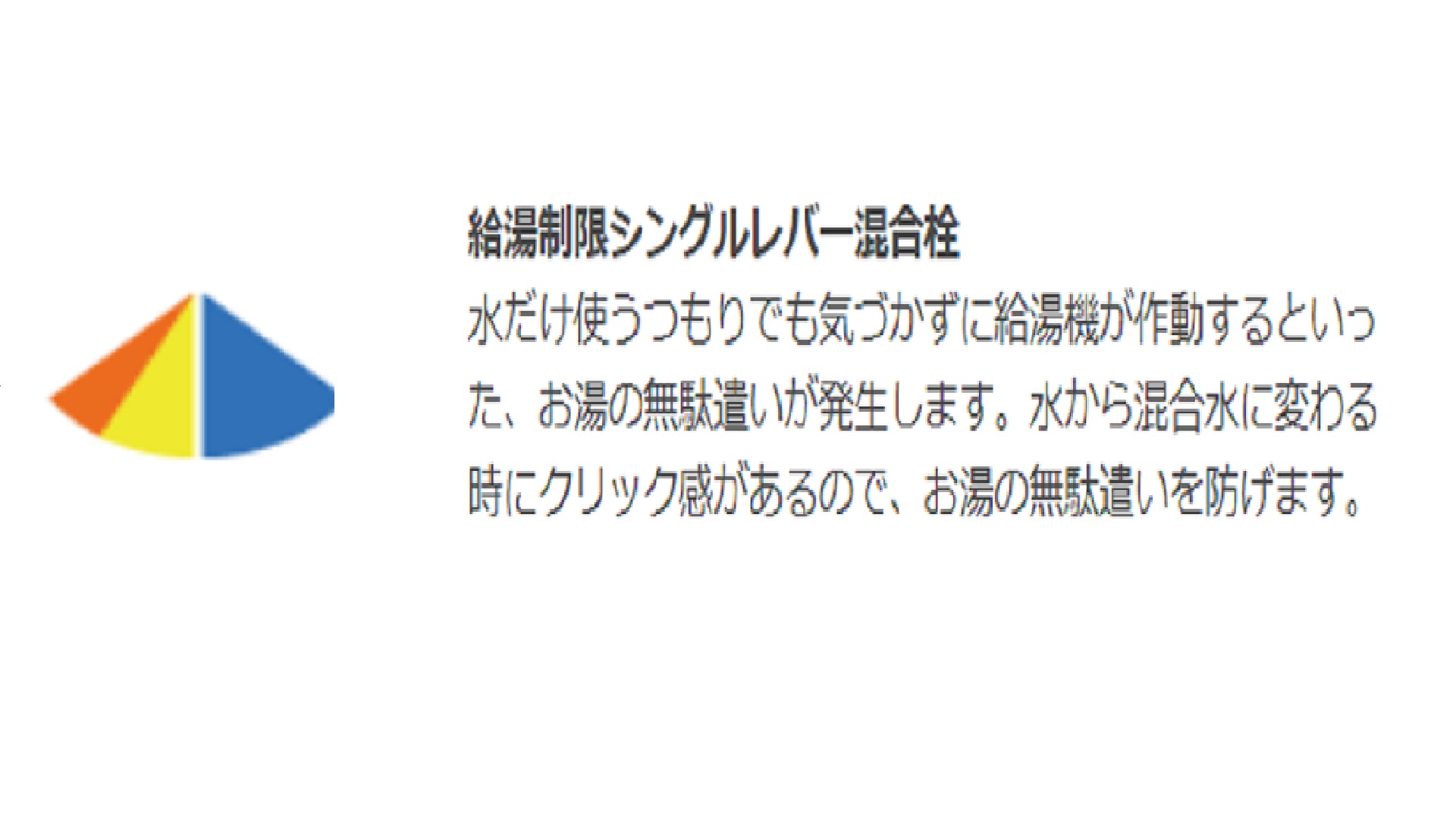 水だけ使うつもりでも気づかずに給湯機が作動するといった、お湯の無駄遣いが発生します。水から混合水に変わる時にクリック感があるので、お湯の無駄遣いを防げます。