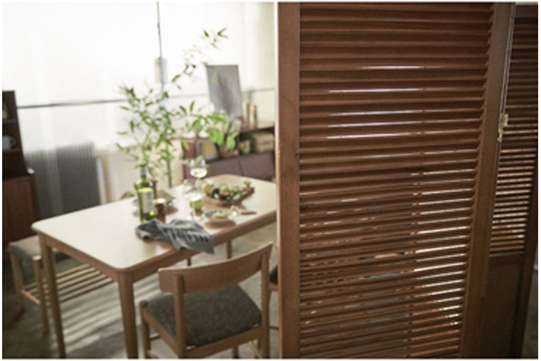 お部屋の仕切りや、目隠しに便利なスクリーン。1枚のパネルが360°可動するので、様々なシーンで使用できます。