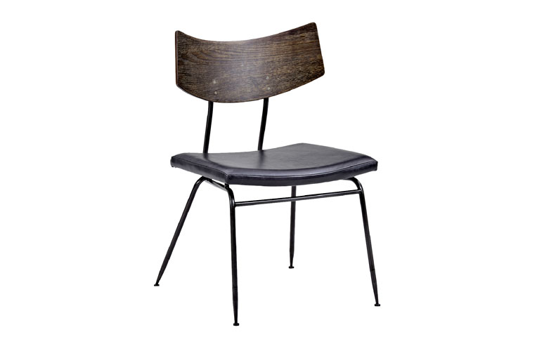 細身のアイアンがシャープな印象のダイニングチェア。緩やかなカーブを描く背が身体を包むように支えます。