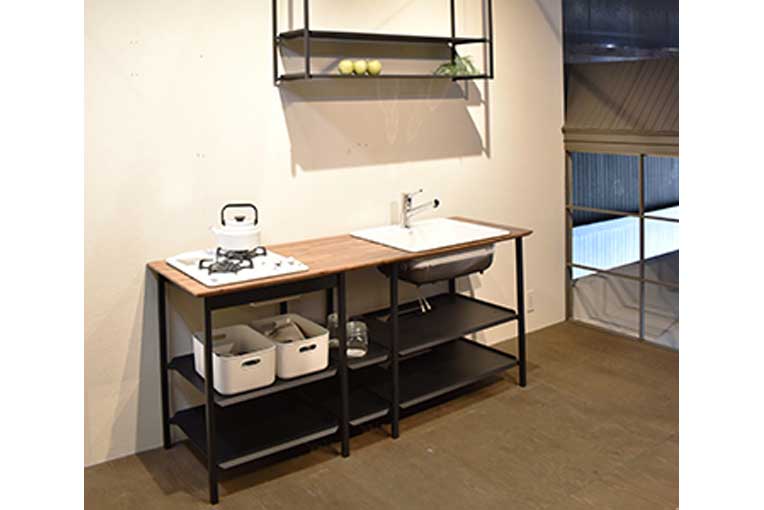 リノベーションでよく見かけるオープンタイプのキッチン吊り棚です。・取付には吊りボルトまたはアンカーボルトによる施工が必要です。(ボルト類は付属しません。)・組立式です。