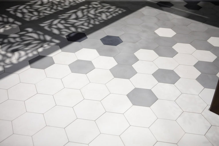 ※セメントタイルは目地なしでの施工が一般的となりますが、目地を入れる場合はタイルのベースカラーと同色の目地を推奨しております。(目地の色の成分がセメント表面に付着し、取れなくなる場合がございます)