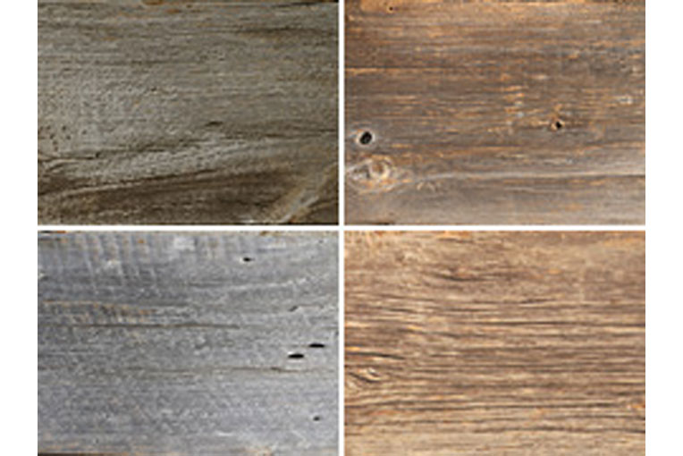 シルバーグレイの色合いと浸食により深くエッチングされたテクスチャーはバーンボード独特のものです。
