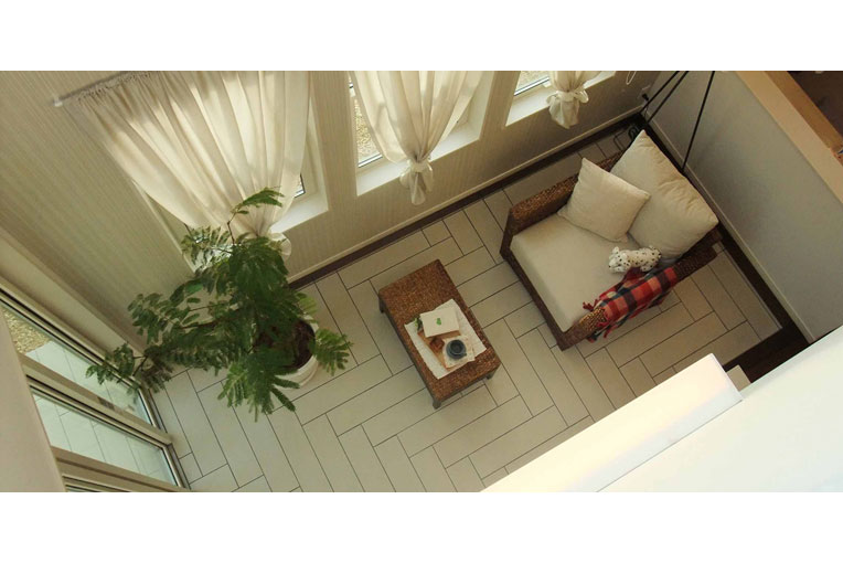 テラスからリビングを同じテイストの床で一続きにすることも可能です。