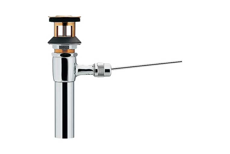 引棒付き水栓と連結して水栓側のつまみで排水戦の開閉を行います。