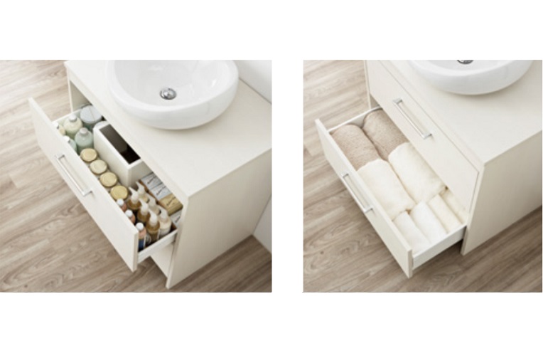 収納力たっぷり、上下2段の引き出し収納です。タオルやアメニティグッズを分けて収納可能です。