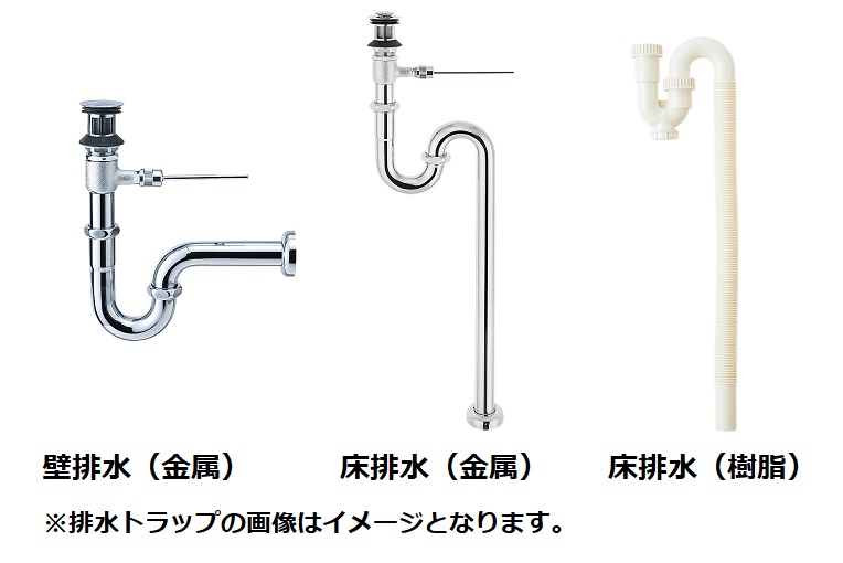 排水金具は金属製、樹脂製の2種類をご用意しています。※プッシュ排水栓を選定の場合は、床排水(樹脂)となります。