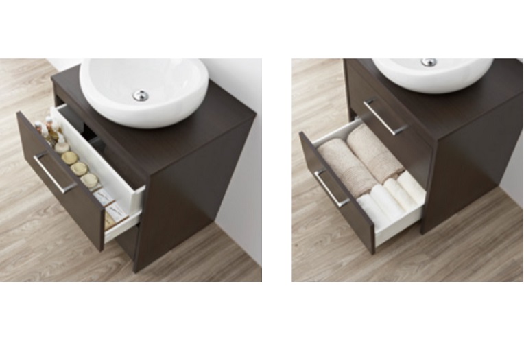 収納力たっぷり、上下2段の引き出し収納です。タオルやアメニティグッズを分けて収納可能です。