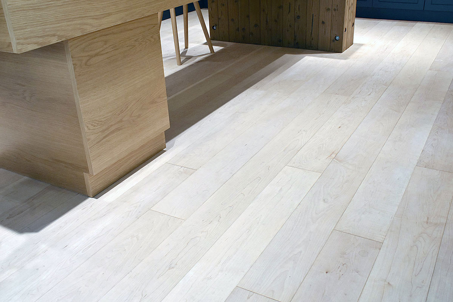 メープル材突板の3層フローリングです。クリアオイル塗装でナチュラルに仕上げています。