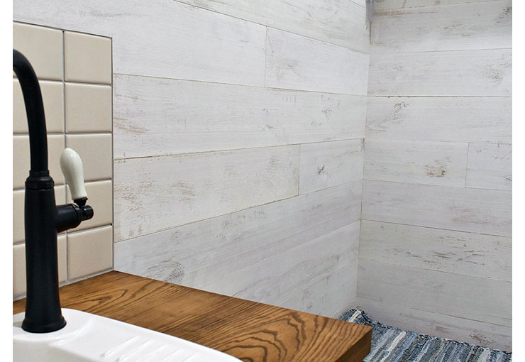 木目を残しながらの薄いホワイトの塗装が、ナチュラルで優しい雰囲気を演出します。
