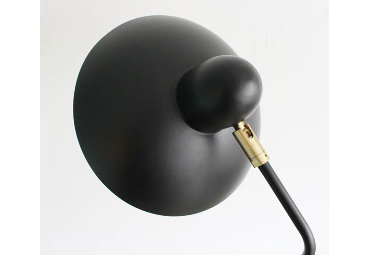 シェードから延びるベースのラインが、まるで頭に乗せた帽子に手をかけているように見えませんか?モダンテイストに、クラシカルな雰囲気をミックスしたデザイン。