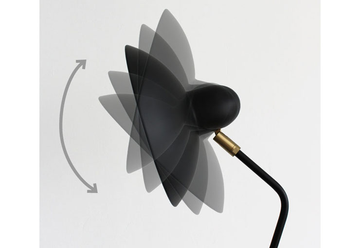 シェードは角度調節可能なので、ソファで読書などをする際に、近くに置いて手元を照らしたり、壁や天井側に光を向けて、間接照明としてお使いいただけます。