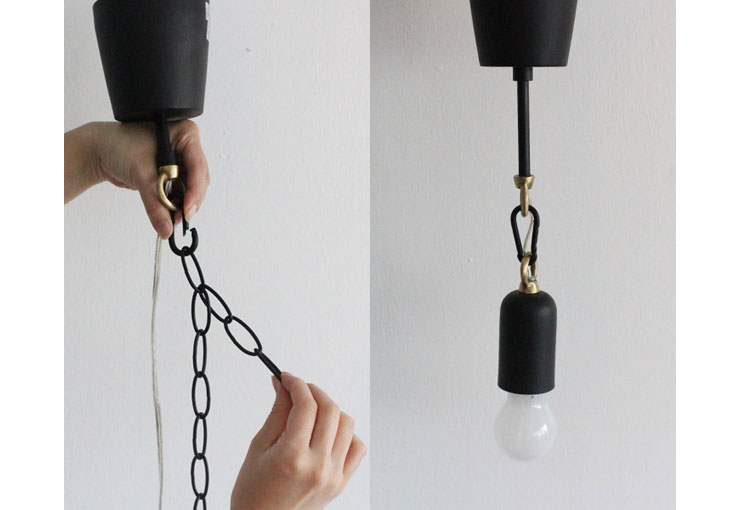 付属のチェーンを取り付けると、シェードの位置を下げることができ、テーブルなどに光を当てられます。
