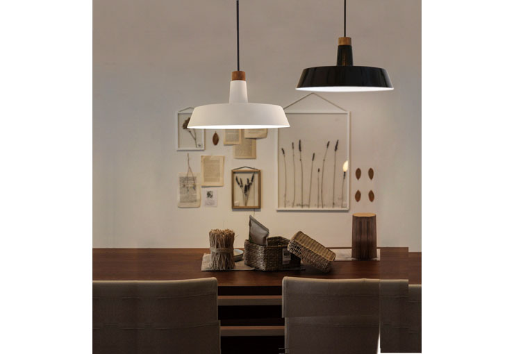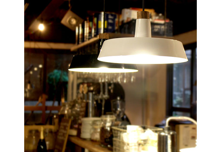 シェードに艶のある塗装を施し、琺瑯(ほうろう)の様な質感に仕上げています。清潔感溢れる印象で、キッチンやサニタリースペースにおすすめです。
