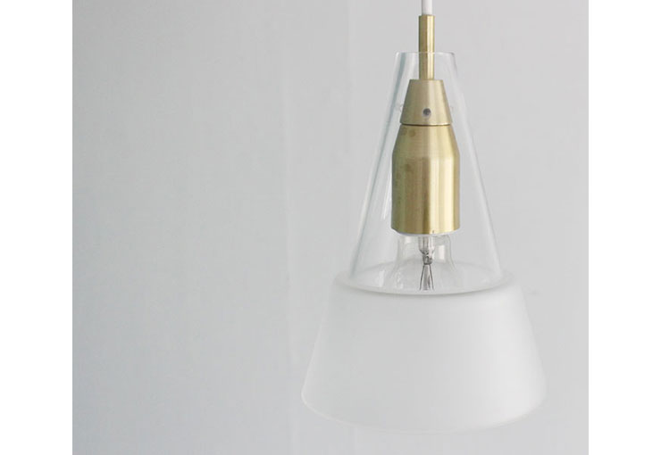部屋全体に広がる光と影の陰影と、ガラス上部から漏れる光の美しさを計算して生まれたランプです。
