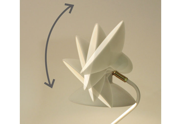 【アルル地方の女性の帽子をモチーフにデザインされたデスクランプ】シェードから延びるベースのラインが、まるで頭に乗せた帽子に手をかけているように見えませんか?