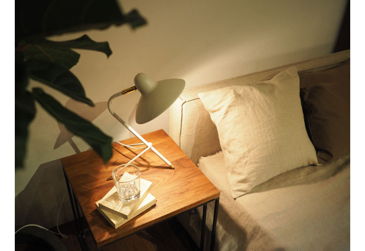 シェードは角度調節可能なので、チェストやサイドテーブルなどに置いて、