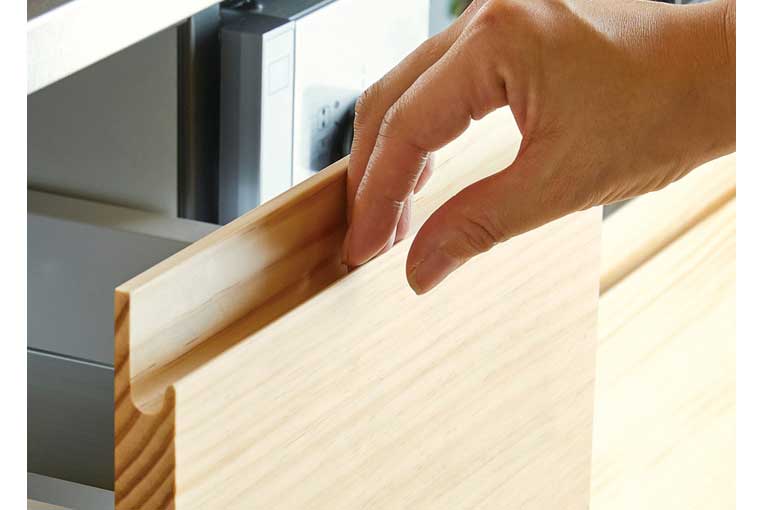 大容量でありながら、直線的でのびやかな木目によって見た目はすっきり。