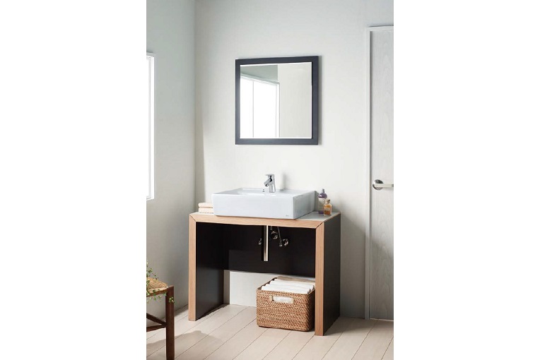 水まわりやドレッサーに使用できます。家具調フレームのミラーがワンランク上の空間をつくります。