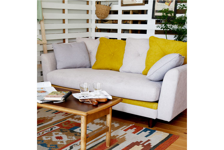 | 素材 | (張り材)ファブリック (クッション材)ウェービングベルト、Sバネ、ウレタンフォーム (脚)ラバーウッド材 |