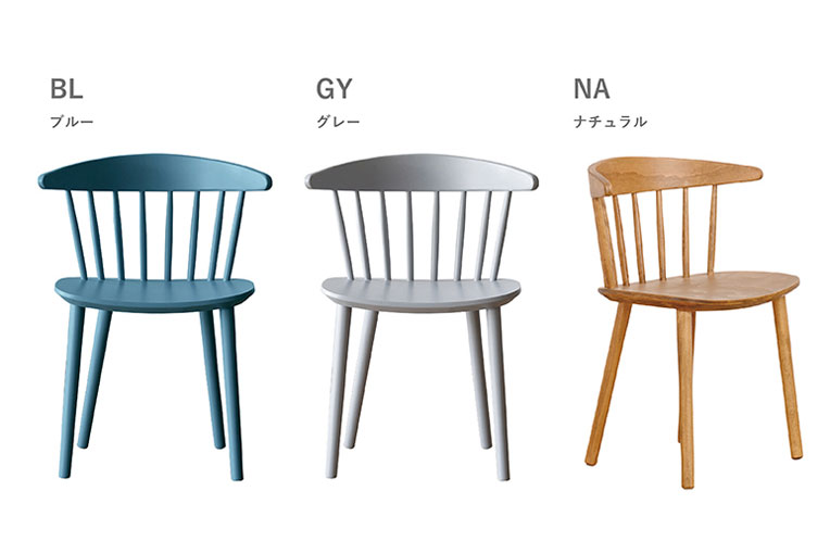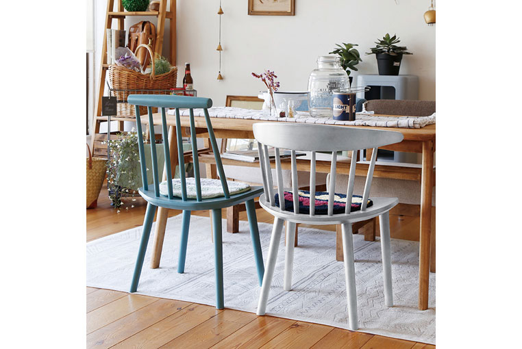スポークデザインのシンプルでスタイリッシュなチェア。スモーキーカラーは差し色としてダイニングにカラーを添えます。