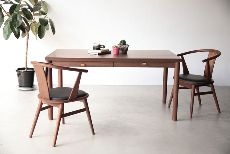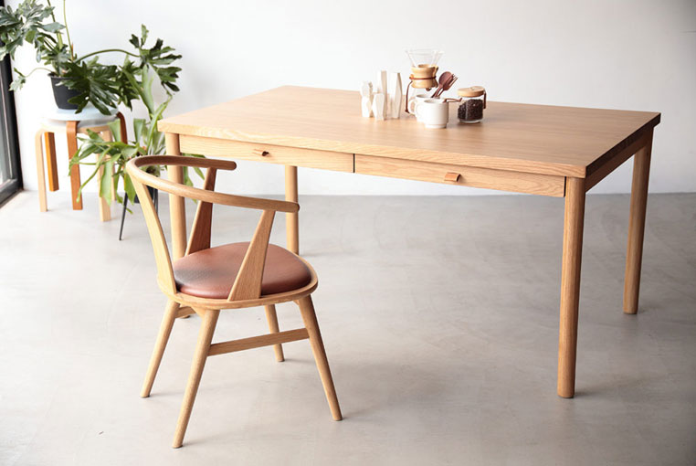 | 材質 | [オーク] オーク突板(天板・引出し)、オーク無垢材(脚)、ポリウレタン塗装 [ウォールナット] ウォールナット突板(天板・引出し)、ウォールナット無垢材(脚)、ポリウレタン塗装 |