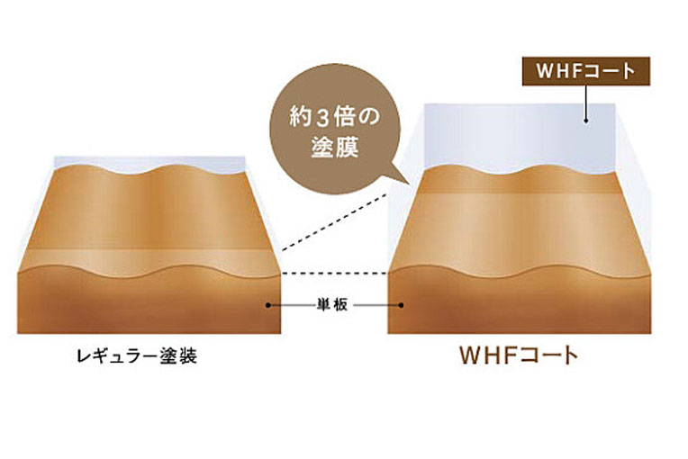 高性能のコーティングで高い耐久性。天然木の深い味わいをぜひ肌でお楽しみください。