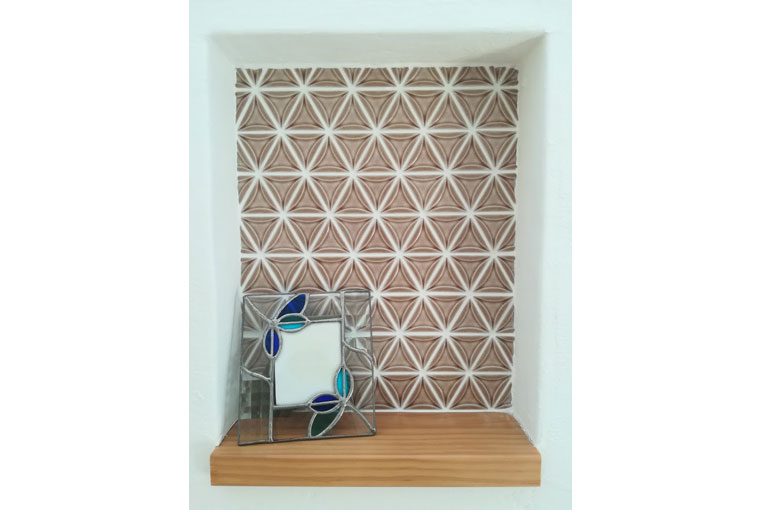 円形や花模様と姿を変えて視覚的に見せる三角形の伝統的な柄は、和洋ともに空間を演出します。
