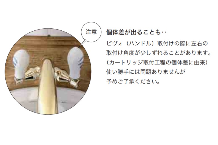 ピヴォ(ハンドル 取付けの際に左右の取付け角度が少しずれることがあります。(カートリッジ取付工程の個体差に由来 使い勝手には問題ありませんが予めご了承ください。