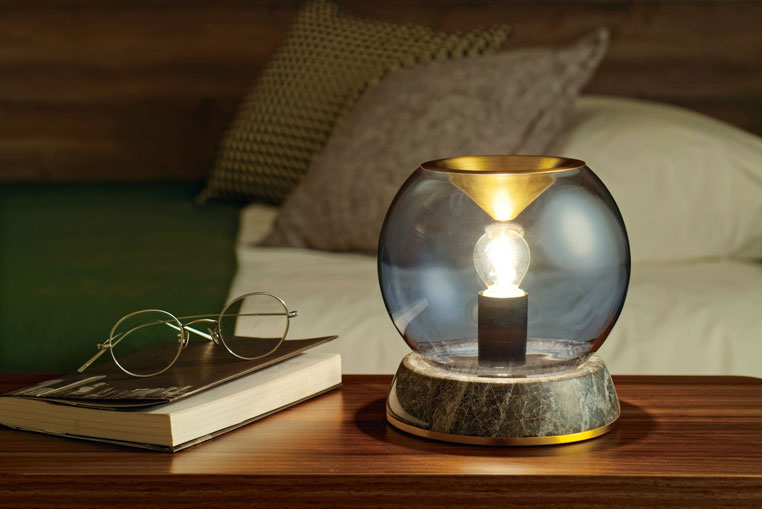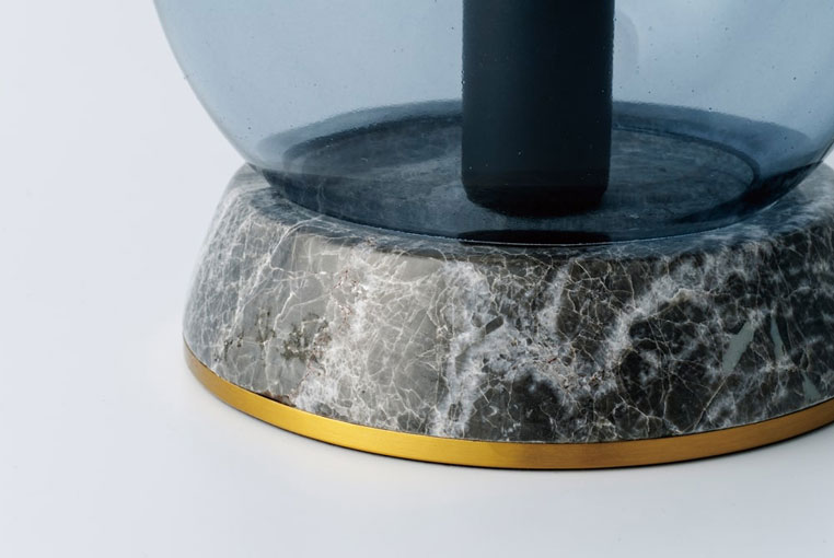 天然大理石のベースにスモーキーなグレーガラスを合わせたムーディーなテーブルライト。