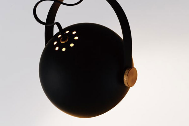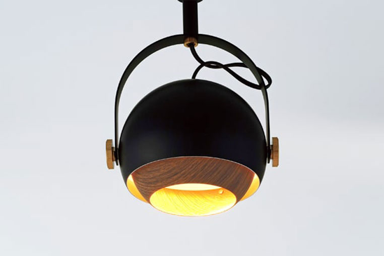 オーディオ機器を思わせる丸いシルエットがビンテージライクなダクトレールライト。