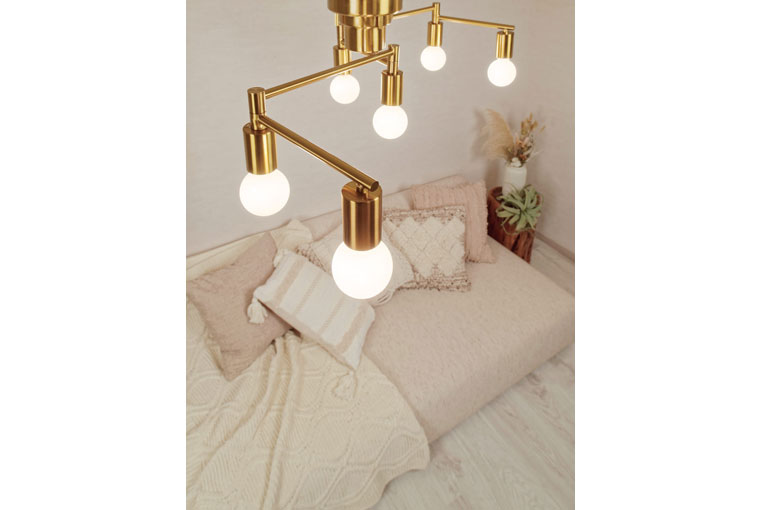 4本の可動アームによりフレキシブルに配置できる6つの電球が、星のようにお部屋を照らします。