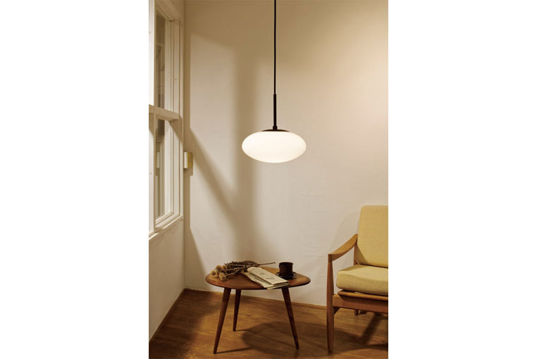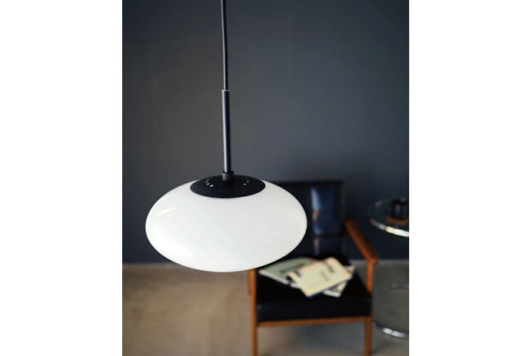 マットブラックのボディと乳白ガラスのコントラストは、モダンインテリアによく合います。