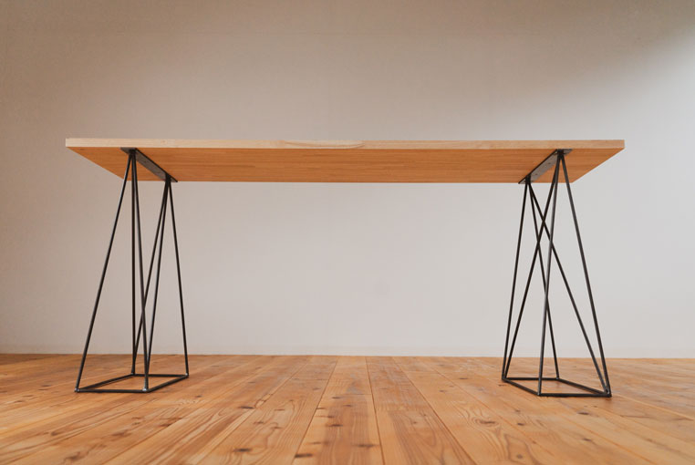 | 材質 | [天板]タモ ※ハギピッチ100〜150mm(材木の状況により異なります) [脚部]鉄(φ9mm丸棒) |