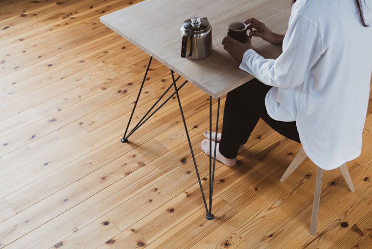 | 材質 | [天板]タモ ※ハギピッチ100〜150mm(材木の状況により異なります) [脚部]鉄(φ9mm丸棒) |