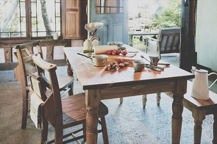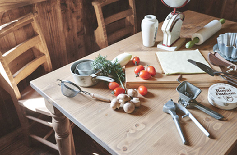 パイン材をオイル仕上げしたナチュラルなテーブル。