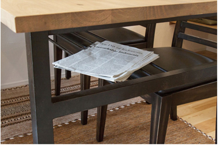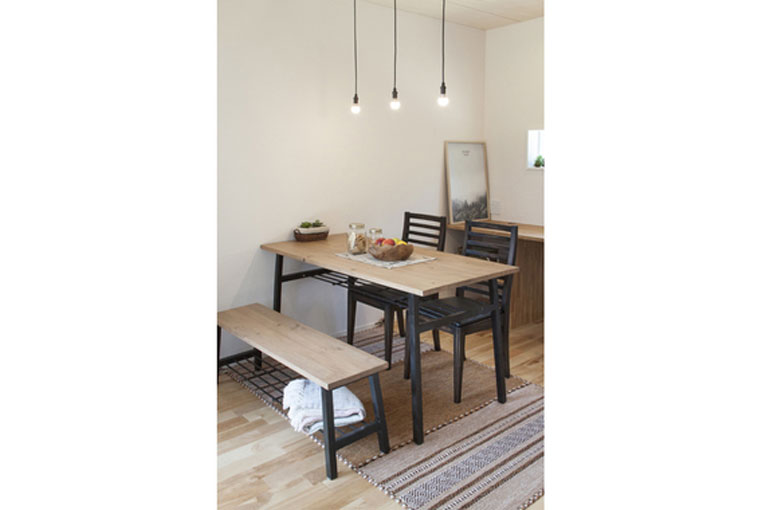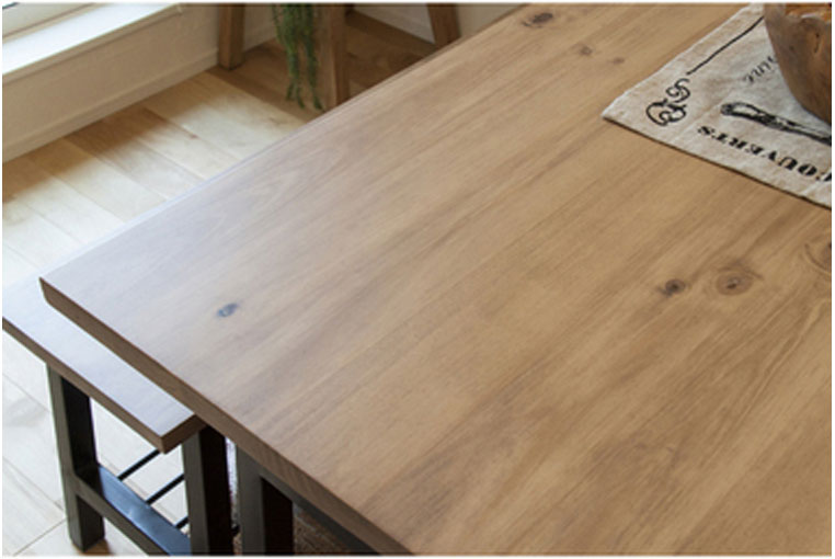 天然木とスチールを使用した、人気な異素材の組み合わせ。